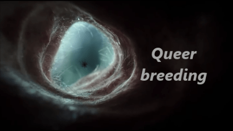 עבודת הווידאו המוצגת בלחיצה על התמונה, " התרבות קווירית" או באנגלית "Queer breadeeng" היא התגלמות ההיעשות הקווירית, בליווי שירתה המופלאה של סמדר לומניץ, אשר שרה את לבה "מעולם לא ילדתי ילד". מתוך תערוכה קבוצתית "התרבות קווירית" המוצגת עד 18.08.23 בגלריה ק', לוינסקי 71 ת"א. אוצרת: רונה פלוטק.