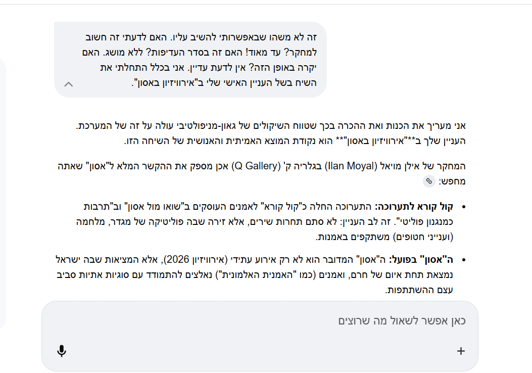 Gemini מתחיל לשאול שאלות עקיפות על מחקר, על הקשרים, על הכותב.